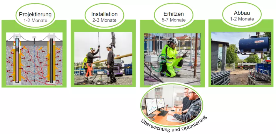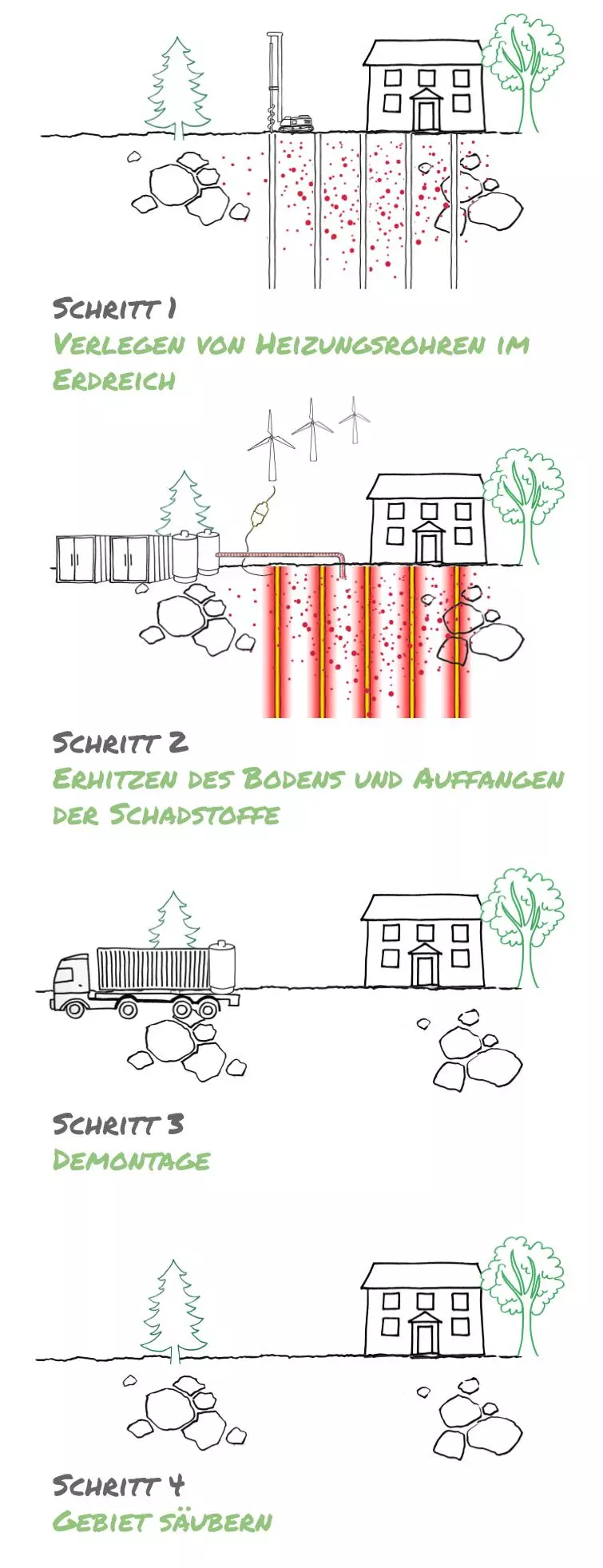 Wir beseitigen die Schadstoffe, die tief in den Boden eingedrungen sind, indem wir den Boden erhitzen.